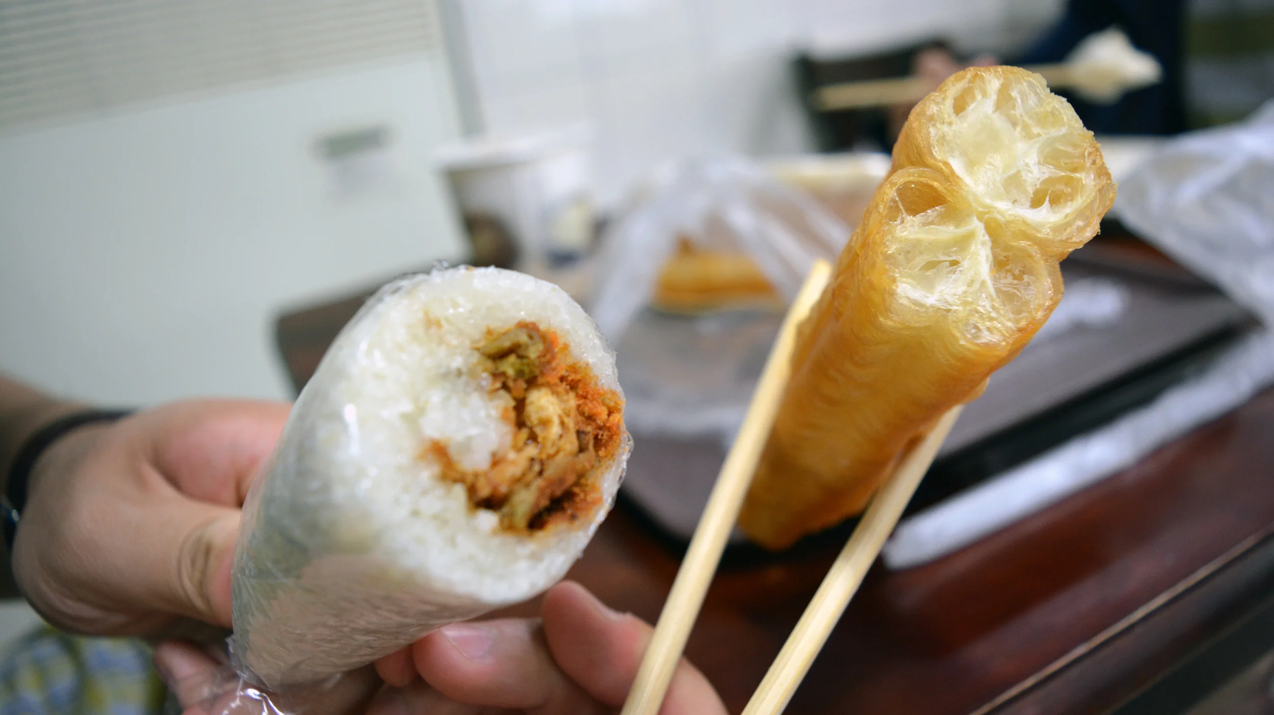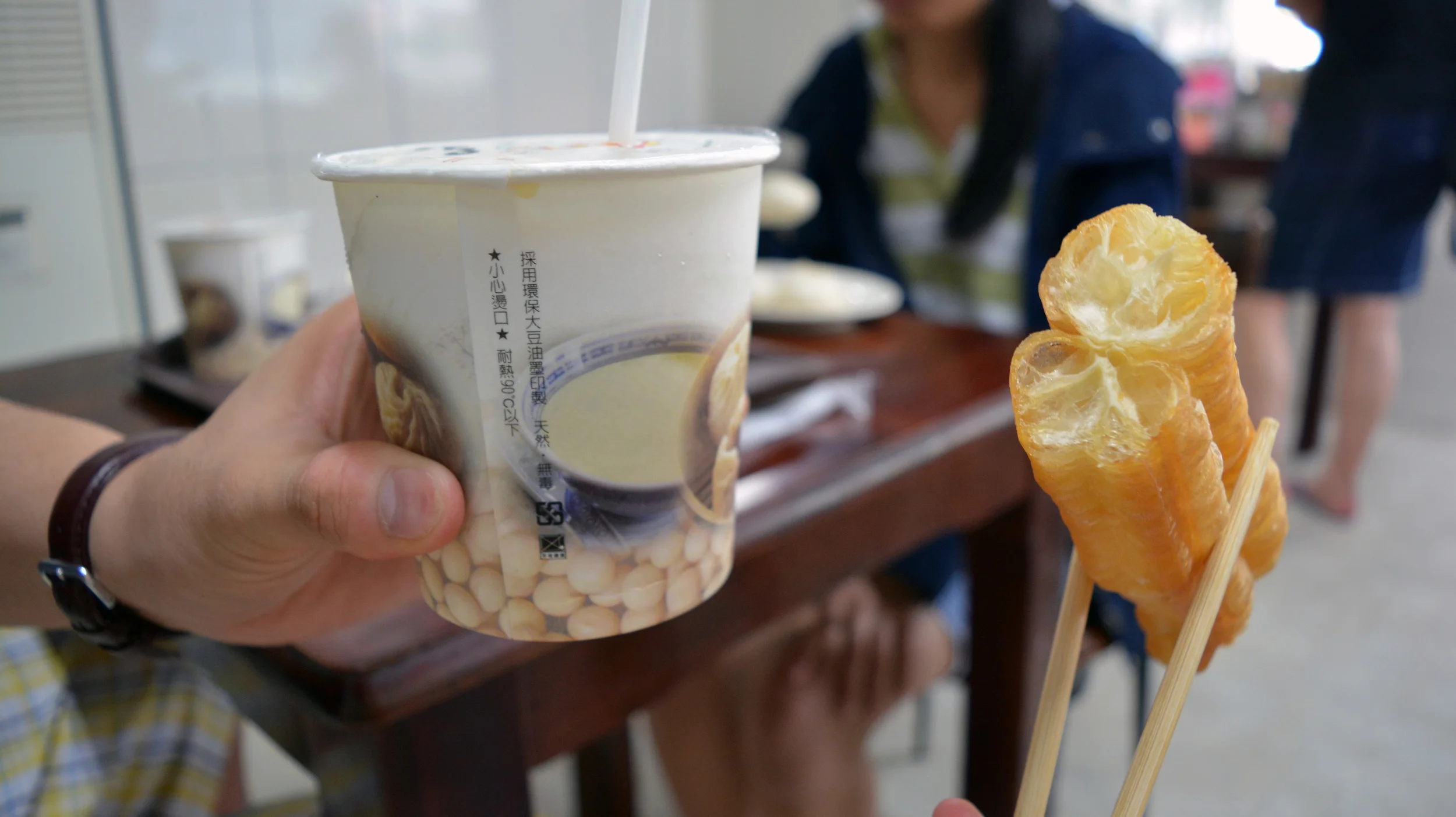 A traditional Taiwanese breakfast is youtiao 油條 and soy milk. Youtiao are fried breadsticks and you stick them into your soy milk and then eat them. People eat their rice porridge with pieces of youtiao in it, or even eat it wrapped in a sesame pancake. The options are endless.